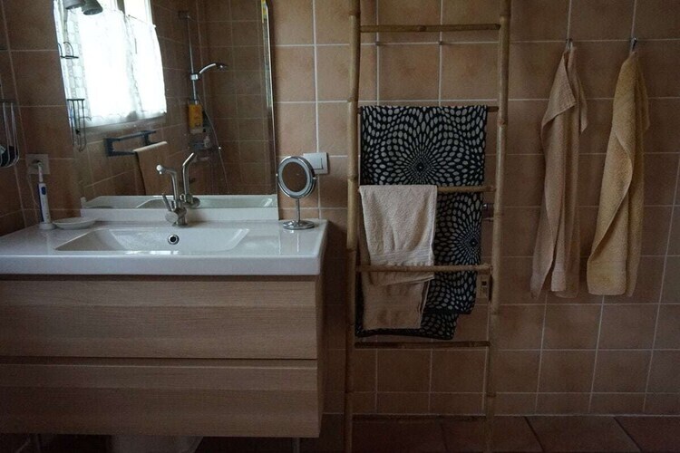 La maison de vacances dispose d'une grande salle de douche et d'une grande baignoire.