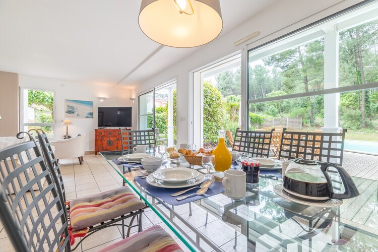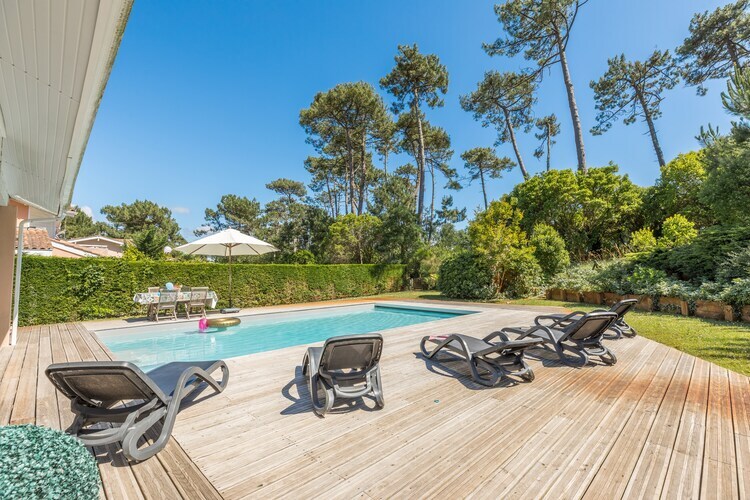 Évadez-vous dans cette villa ensoleillée de 5 chambres nichée dans la pinède de Moliets, à quelques pas de la côte atlantique. Conçue dans le style landais classique, cette maison de 135 à 150 m² allie charme rustique et confort moderne. Savourez vos repas dans une cuisine ouverte entièrement équipée, détendez-vous au coin du feu ou sur la terrasse donnant sur votre piscine privée de 10 x 5 m et votre jardin luxuriant. Pouvant accueillir jusqu'à 12 personnes, elle est idéale pour les réunions de famille ou les séjours en groupe. Remarque : l'intérieur peut varier légèrement, mais le confort est toujours garanti.