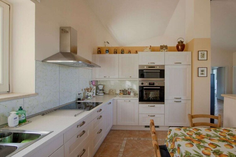 L'appartement de vacances "Melograno", pour 4 à 5 personnes, est situé au 1er étage de la maison de vacances, est spacieux, ensoleillé, calme et dispose d'une grande terrasse panoramique avec table à manger, parasol et transats pour se détendre. Aménagement : deux chambres et une chambre d'enfants, séjour, cuisine-séjour et 2 salles de bains.