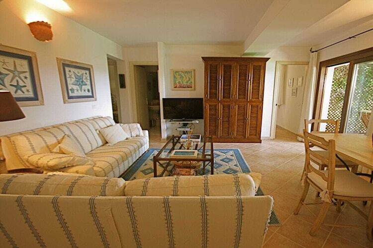 L'appartement est situé au rez-de-chaussée et accueille ses hôtes dans un grand jardin avec piscine privée, meublé de plusieurs canapés et d'une table à manger extérieure. L'entrée mène au salon spacieux, équipé d'une table, d'une armoire et de deux canapés confortables. La cuisine américaine est équipée de toutes les commodités pour cuisiner, dont un four, un lave-vaisselle, une machine à expresso et un micro-ondes. L'espace nuit se compose de trois chambres, la première avec un lit double, la deuxième et la troisième avec chacune deux lits simples. Deux salles de bains avec douches et toilettes complètent les installations.