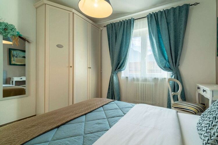 L'appartement est au rez-de-chaussée et dispose d'un espace de vie ouvert avec salon, canapé, télévision, table à manger et d'une cuisine entièrement équipée avec lave-vaisselle, four, micro-ondes, bouilloire, presse-agrumes, machine à café et grille-pain. La zone nuit comprend trois chambres, une avec un lit double et deux avec un lit français chacune. Une salle de bain avec douche complète les équipements.