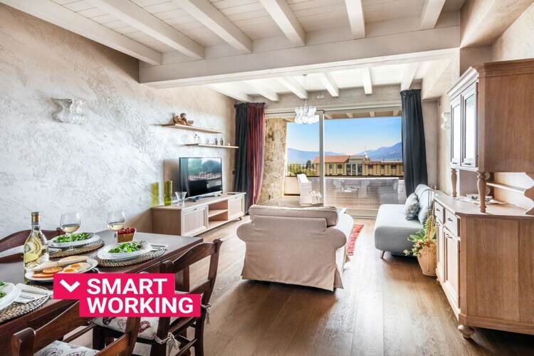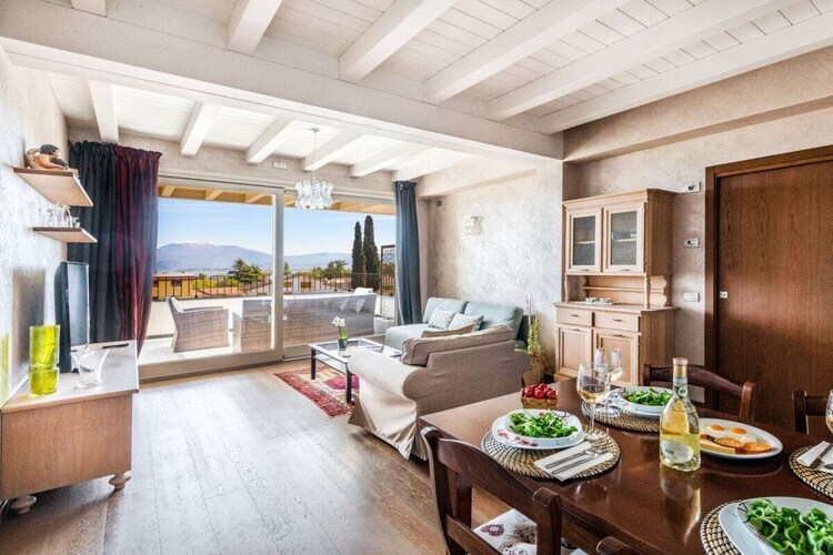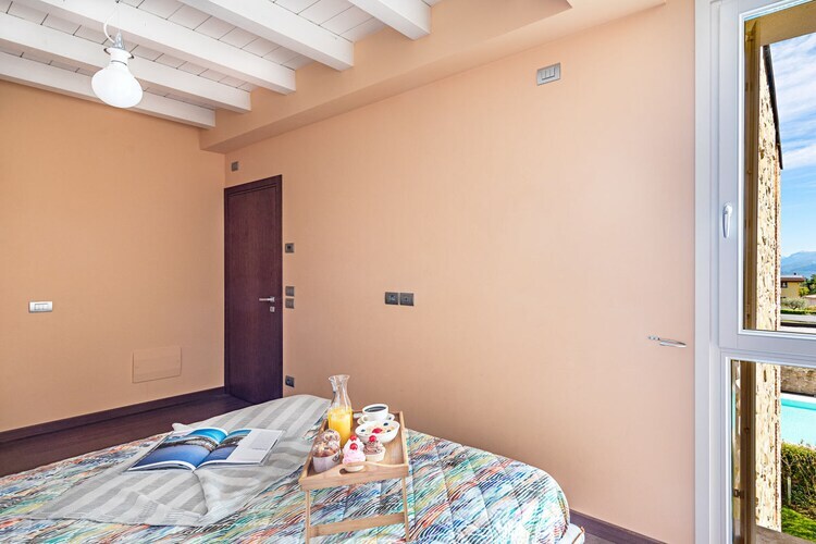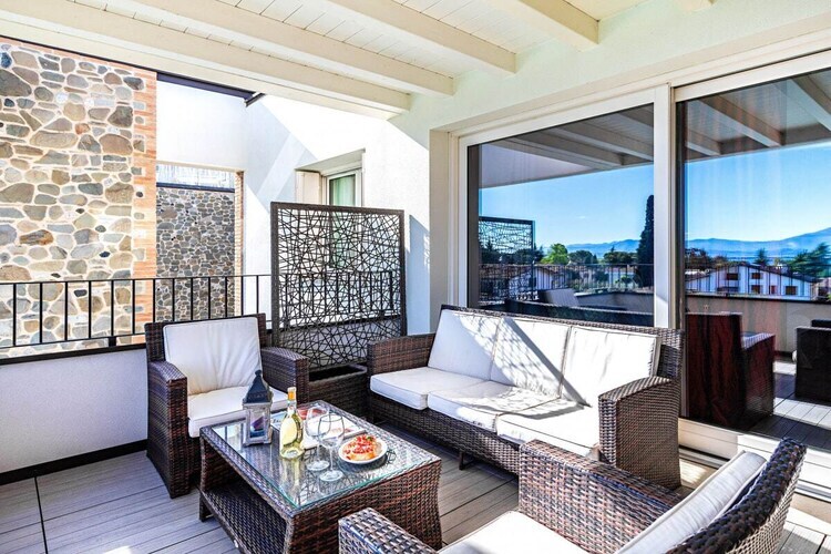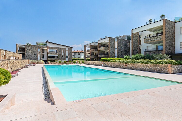 A Desenzano del Garda, dans une résidence exclusive avec piscine, à quelques pas de la plage et du lac, appartement 2 chambres pour 5 personnes au deuxième étage avec ascenseur, terrasse privée avec vue sur le lac et les montagnes !