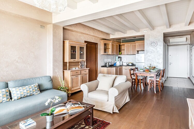 L'appartement avec accès Internet Wi-Fi gratuit accueille ses hôtes avec un grand et lumineux séjour, avec un canapé lit pour 1 personne, une télévision écran plat, une table à manger avec chaises, une cuisine entièrement équipée avec plaques à induction, réfrigérateur, congélateur, micro-ondes, cafetière. cafetière, grille-pain, bouilloire, presse-agrumes.
