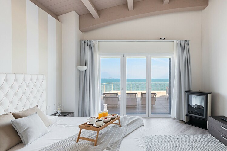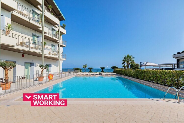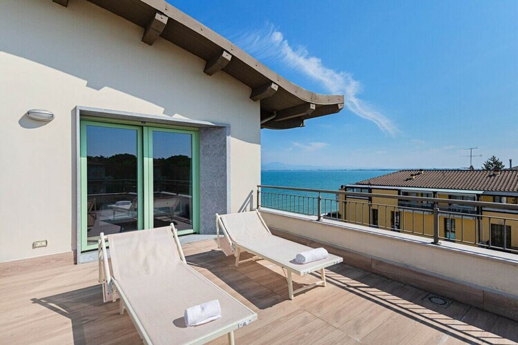 Belle mansarde avec vue imprenable sur le lac, située dans la Residenza Miralago avec piscine à débordement et jardin partagés, à quelques pas du centre de Desenzano del Garda et avec accès direct à la promenade et à la plage publique.