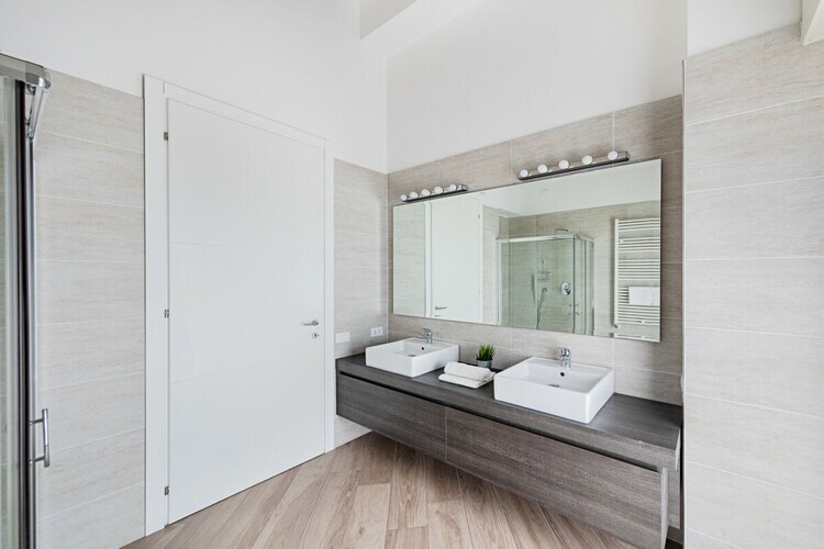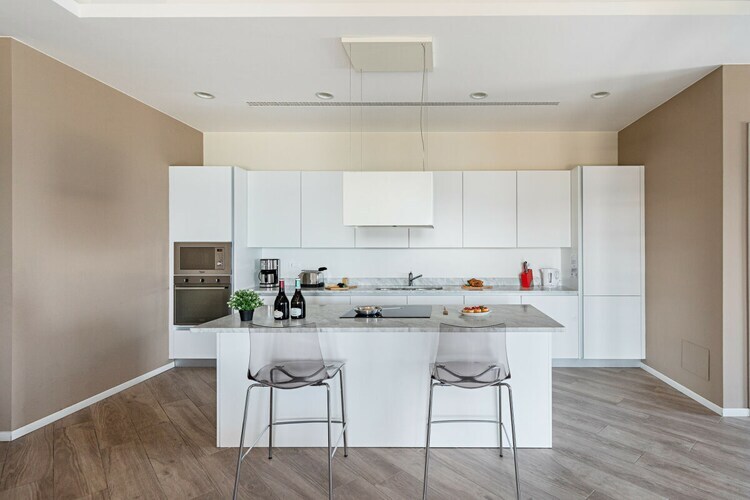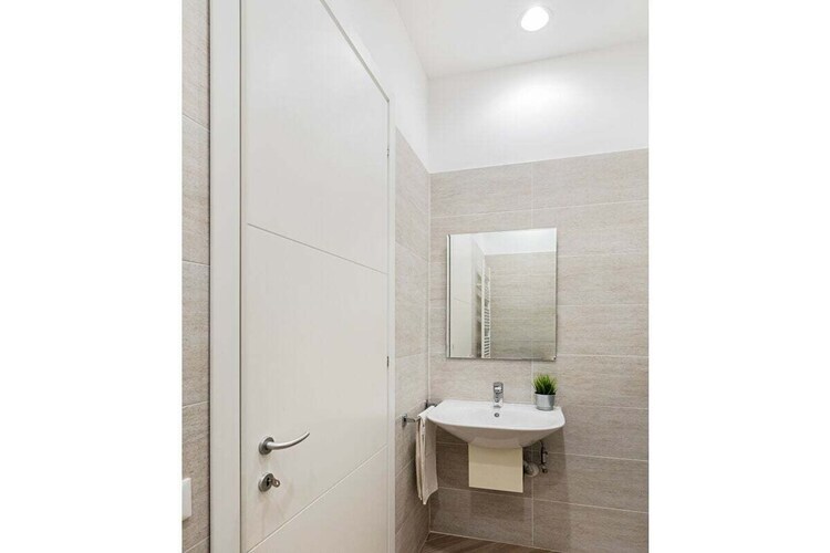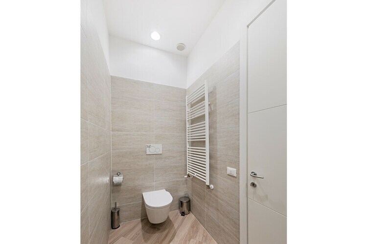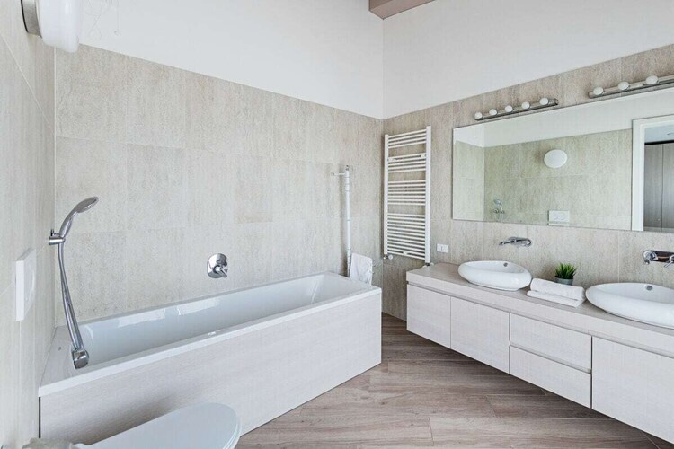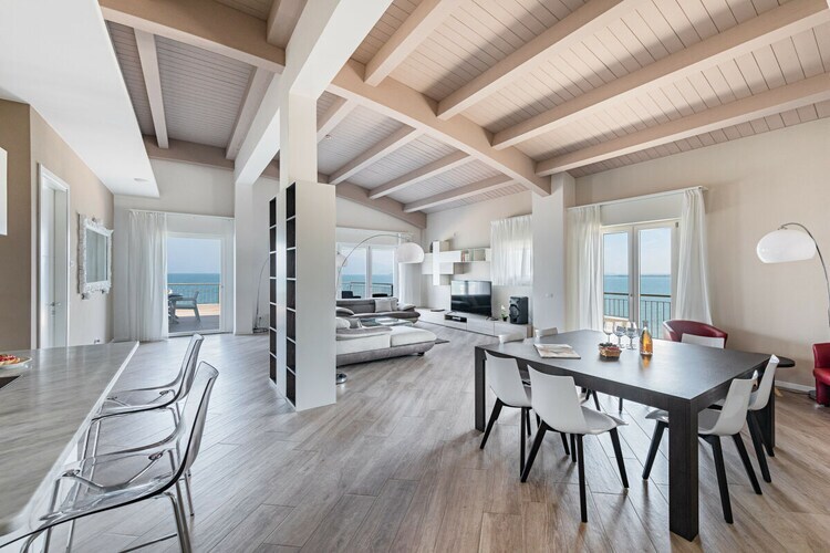 L'élégant grenier, situé au troisième et dernier étage, s'ouvre sur un séjour équipé d'un grand canapé-lit double, d'une télévision, d'une table à manger et d'une cuisine ouverte et bien équipée avec plaque à induction, four, lave-vaisselle et machine à café. Dans la zone nuit, il y a trois chambres : une avec un lit double et les autres avec deux lits simples, toutes équipées d'une grande armoire et d'une salle de bain privée. Une quatrième salle de bain complète l'appartement.