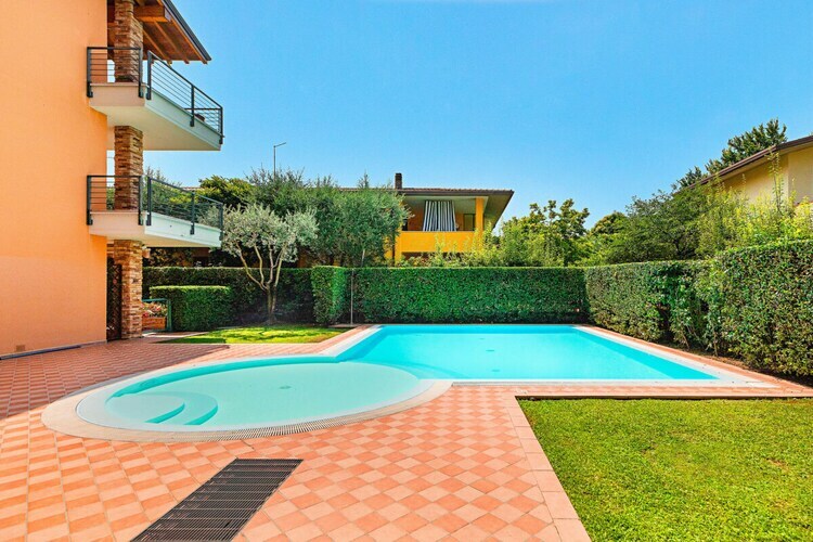 Dans la prestigieuse commune de Sirmione, à quelques pas du lac et de la plage, appartement 1 chambre dans résidence avec piscine au premier étage, pour des vacances en groupe ou en famille jusqu'à 4 personnes !