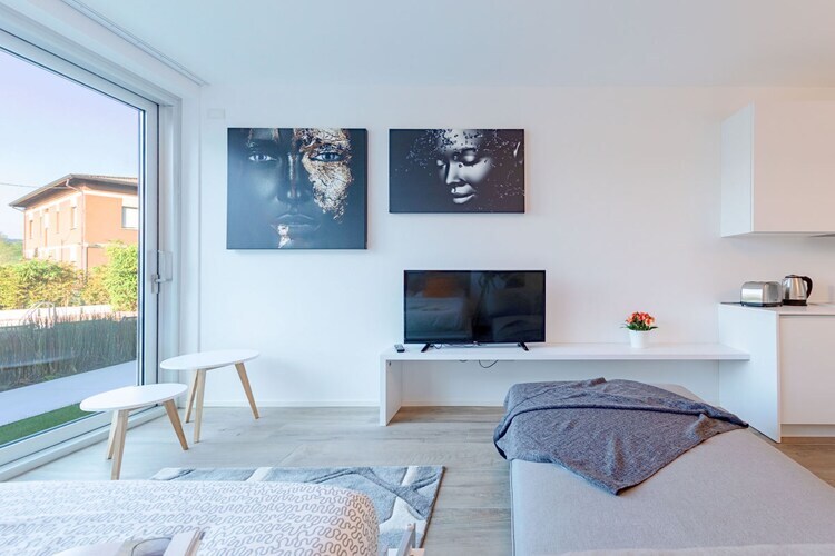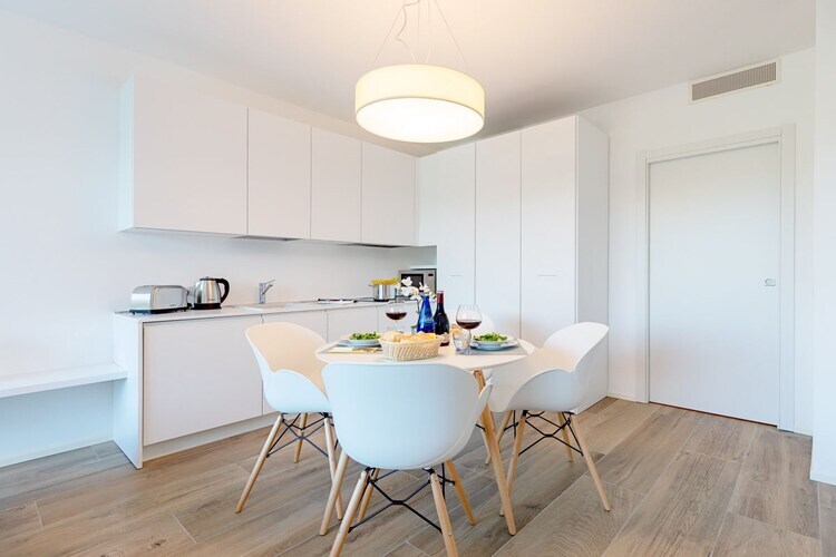 L'appartement accueille ses hôtes avec un séjour lumineux et une belle vue sur la piscine et le jardin de la résidence et avec un canapé lit pour 1 personne, un lit double pliant, TV écran plat, table à manger avec chaises pour 4, une cuisine entièrement équipée. cuisine avec plaques à induction, réfrigérateur, congélateur, lave-vaisselle, micro-ondes, bouilloire, cafetière, presse-agrumes et grille-pain.