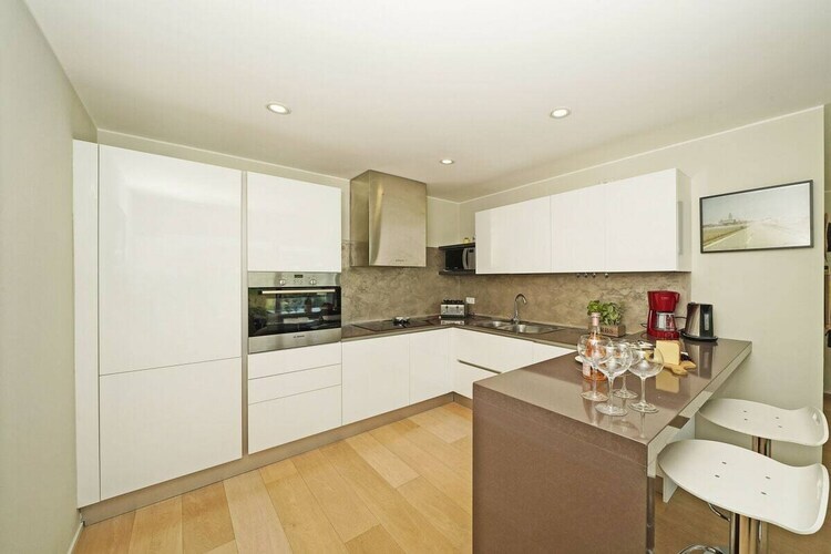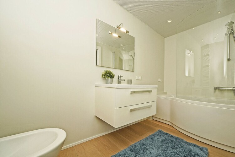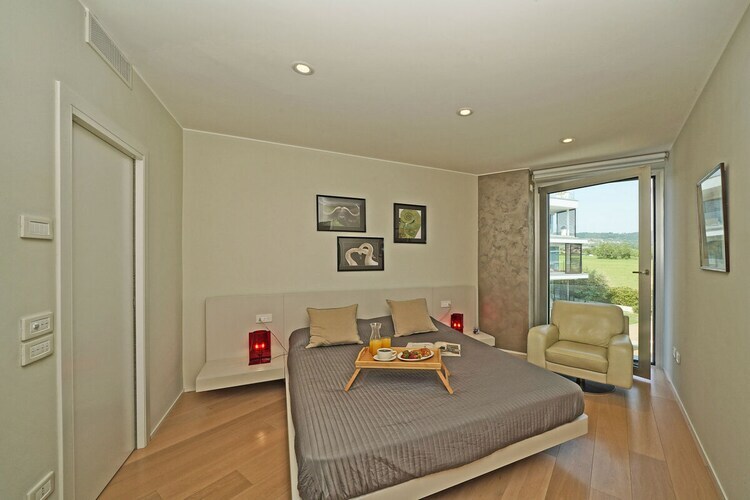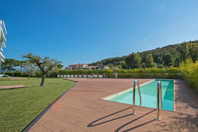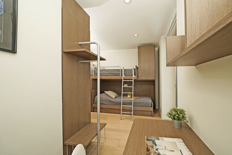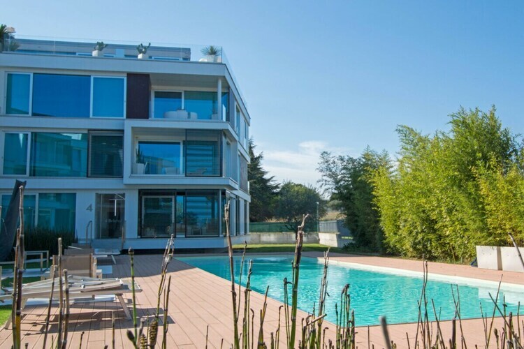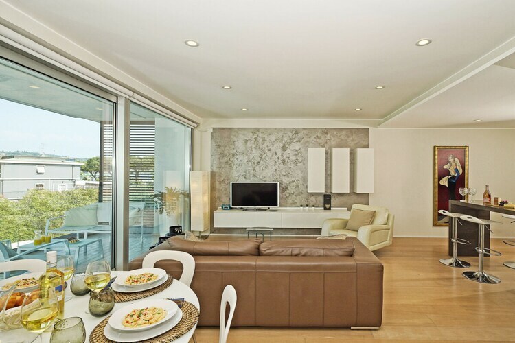 L'appartement est situé au deuxième étage d'un immeuble avec ascenseur et s'ouvre sur le séjour lumineux, équipé d'un confortable canapé-lit double, d'une télévision, d'une table à manger avec chaises et d'une cuisine ouverte entièrement équipée avec four, lave-vaisselle, un micro-ondes, un grille-pain et une machine à café américaine sont présents. Les doubles portes mènent aux invités au balcon privé, qui offre une belle vue sur la piscine et le jardin. L'espace nuit est composé de deux chambres, la première avec un lit queen size, armoire et salle de bain privative, la seconde avec un lit superposé et armoire. Une deuxième salle de bain avec baignoire complète l'installation.
