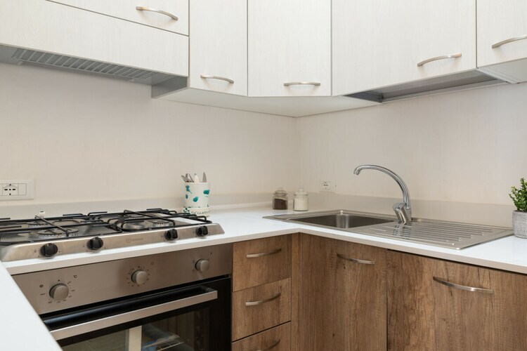 La cuisine à gaz séparée est équipée d'un réfrigérateur, d'un four, d'un congélateur, d'un lave-linge, d'un lave-vaisselle, de vaisselle/couverts, d'ustensiles de cuisine et d'une cafetière.