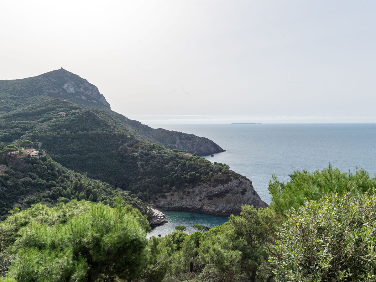 Location composée d'un bâtiment principal et d'une annexe, Comprensorio Cala Piccola, à 7 km du centre de Porto Santo Stefano, situation tranquille, ensoleillée sur un versant, quartier résidentiel, à 1.2 km de la mer, dans la verdure.