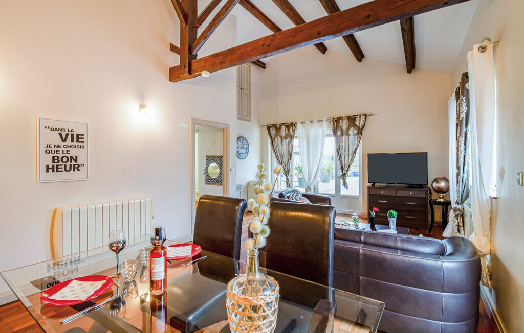 Passez des vacances reposantes dans cette belle maison de vacances, entourée des douces collines du Périgord. Le salon et la salle à manger confortables vous offrent une retraite douillette, et la cuisine entièrement équipée est idéale pour cuisiner ensemble et déguster des spécialités régionales. Après une journée de découverte, vous pourrez vous détendre dans le jardin privé ou profiter de l'espace détente commun avec piscine, jacuzzi (moyennant un supplément) et activités de loisirs, idéal pour passer des moments inoubliables en famille ou entre amis. Il y a une autre maison de vacances sur la propriété, que vous pouvez réserver en plus selon les disponibilités et partager l'espace extérieur.
