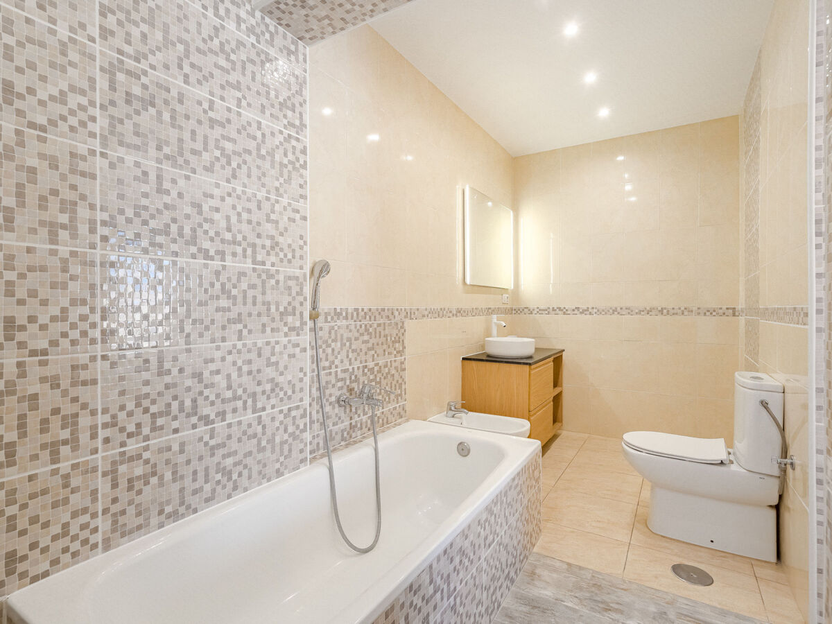 1 chambre avec 1 grand-lit (180 cm, longueur 200 cm), bain/bidet/WC et ventilateur.