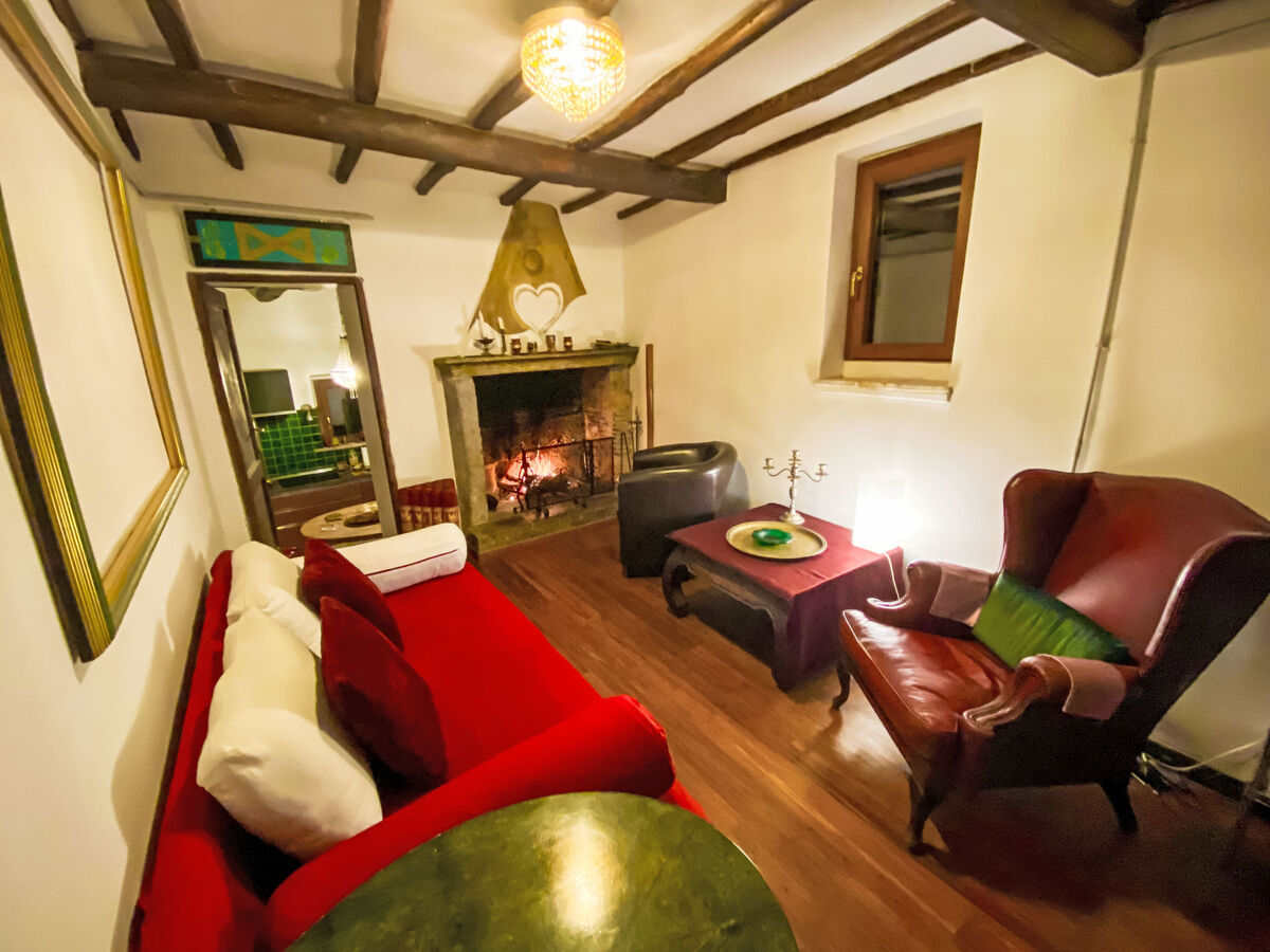 Aménagement de bon goût et plaisant: séjour avec 1 divan-lit et cheminée.