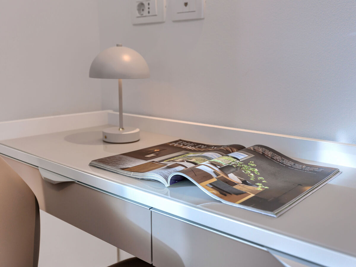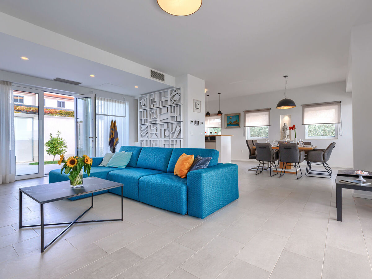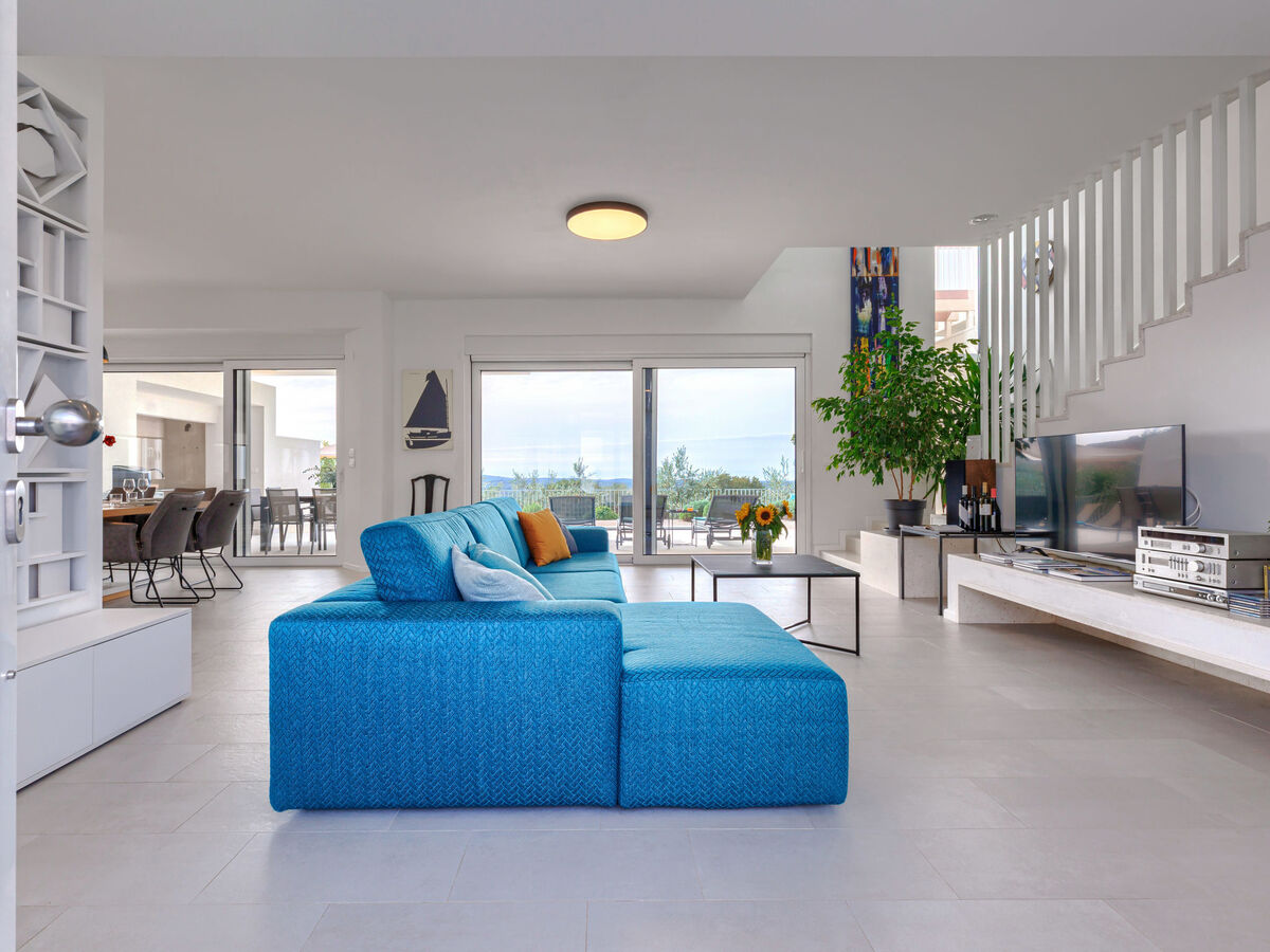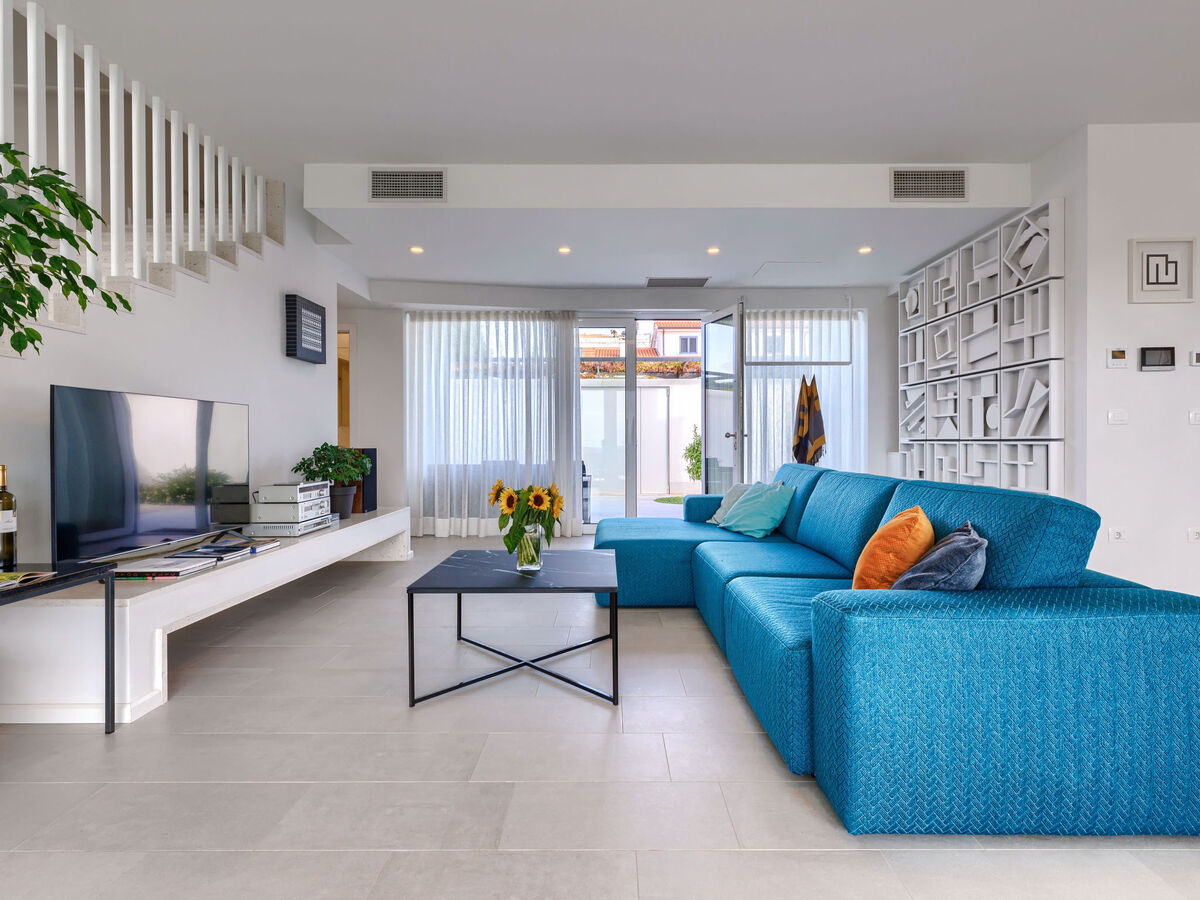 Spacieux, aménagement moderne et de style: séjour/salle à manger avec TV (satellite) et air-conditionné.