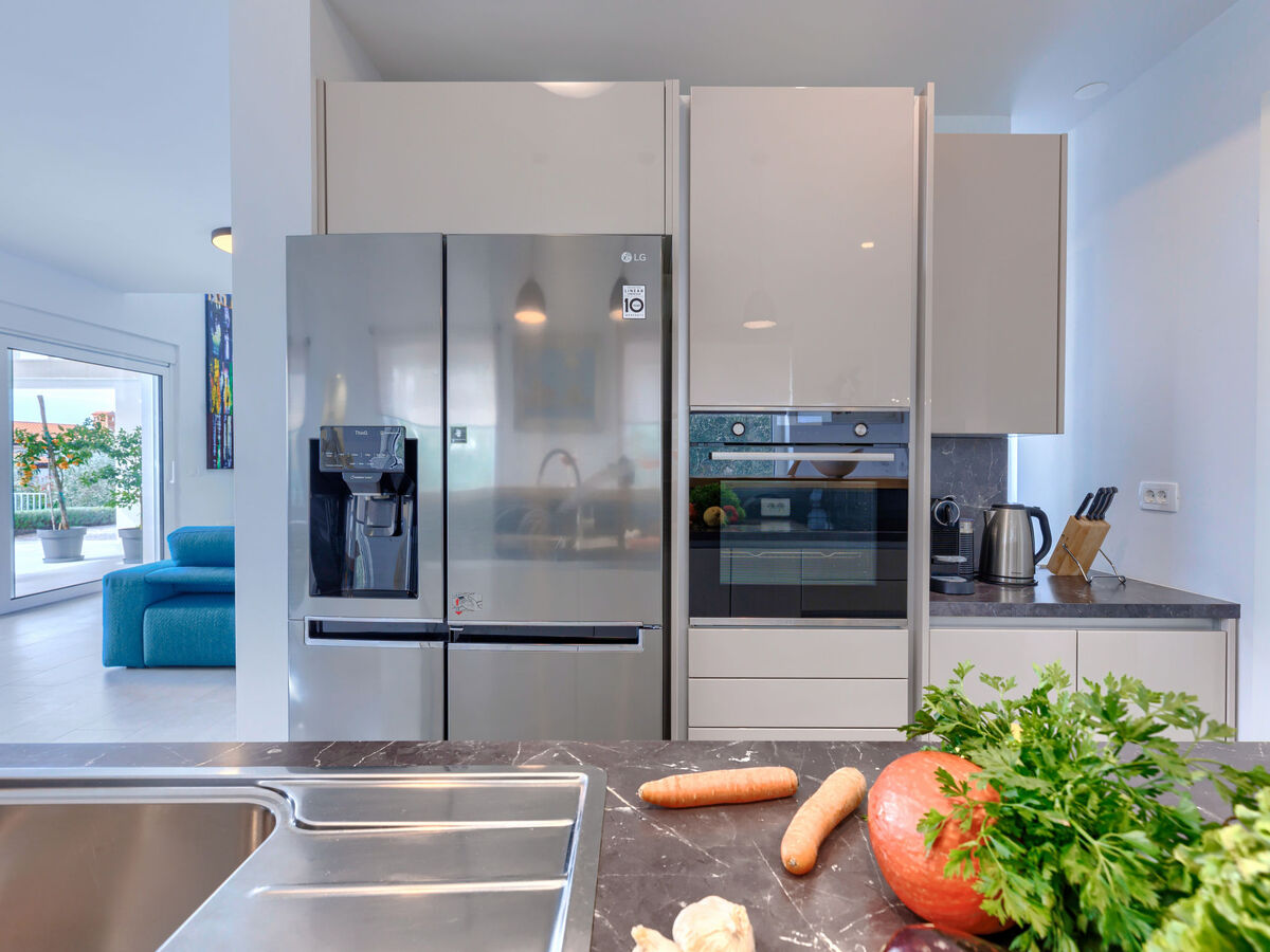 Cuisine ouverte (four, lave-vaisselle, 5 plaques à induction, bouilloire électrique, micro-ondes, congélateur, cafetière électrique).
