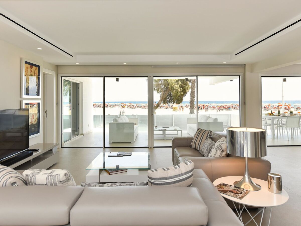 Aménagement moderne: séjour avec Télévision numérique, écran plat et air-conditionné.