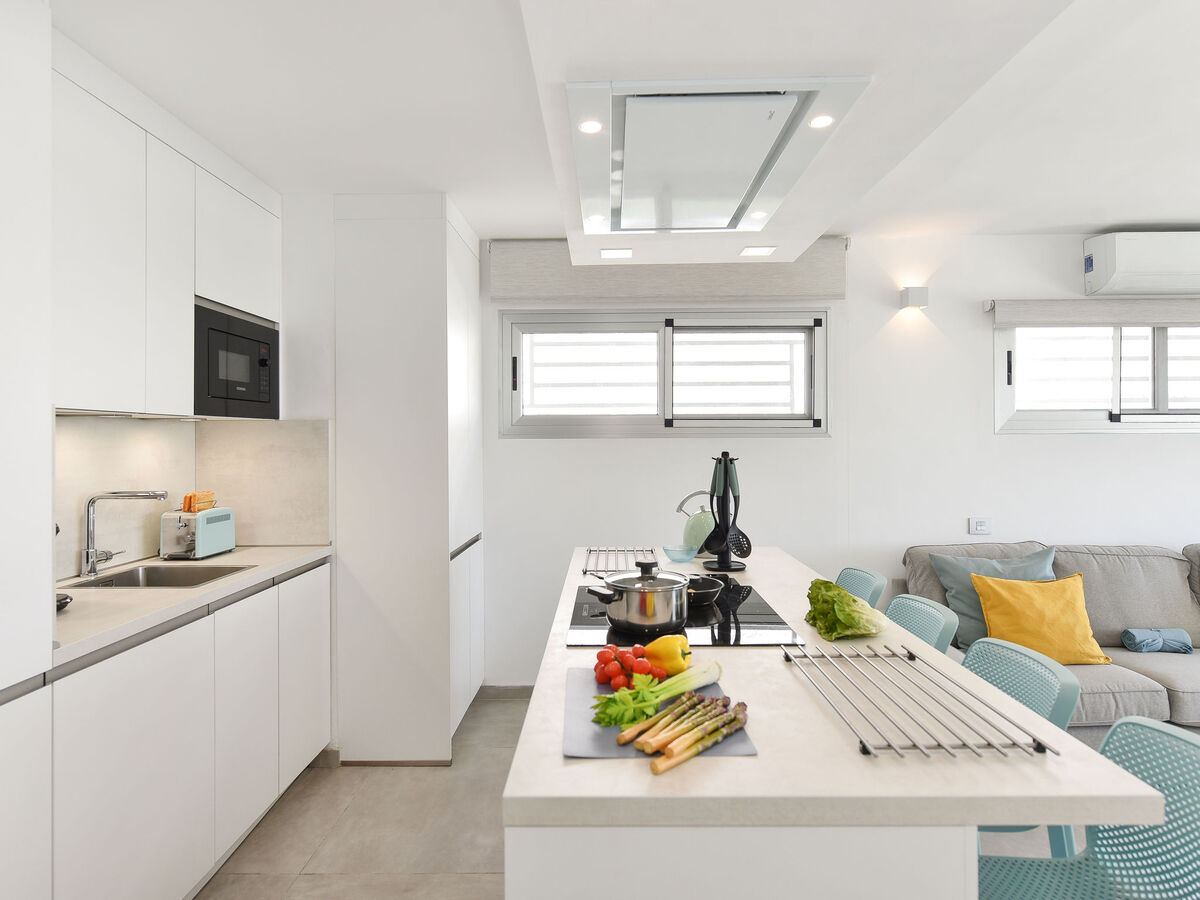 Cuisine (four, lave-vaisselle, grille-pain, bouilloire électrique, micro-ondes, cafetière électrique) avec bar.