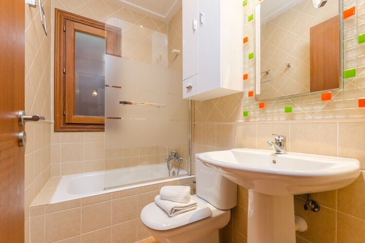 L'appartement, chaleureux et familial, dispose de quatre chambres conçues pour accueillir confortablement des familles ou des groupes. Au rez-de-chaussée, une chambre offre un lit double et une salle de bain attenante avec baignoire. A l'étage, les hôtes trouveront une autre salle de bain et trois chambres supplémentaires : une avec un lit double et une salle de bain en suite, et deux avec des lits jumeaux. Toutes les chambres sont équipées d'armoires et de climatisation, garantissant un environnement agréable. Un lit bébé et une chaise haute sont également disponibles pour les familles avec des nourrissons, ce qui ajoute à l'attrait familial de la propriété.