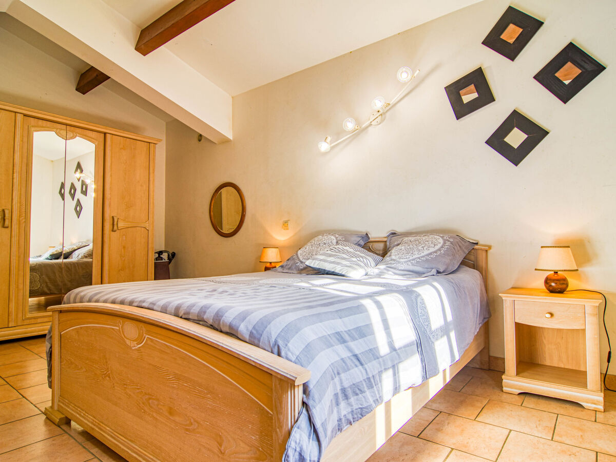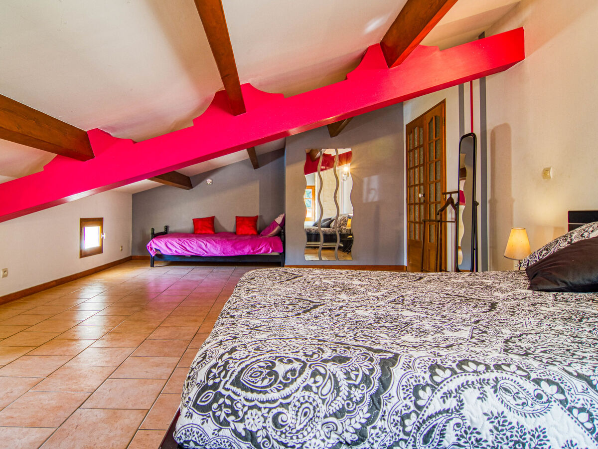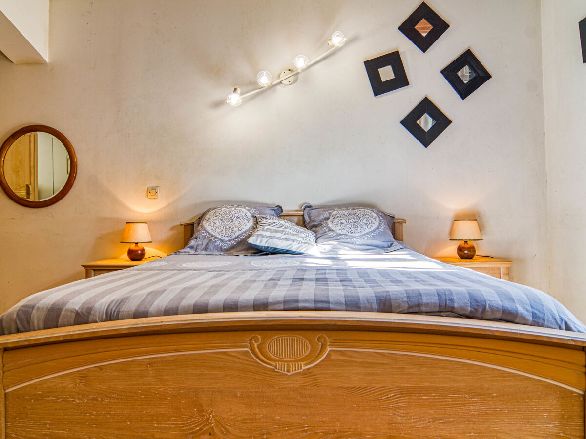 À l'étage supérieur: 1 chambre, mansardée avec 1 lit (90 cm, longueur 190 cm), 1 grand-lit (160 cm, longueur 200 cm).