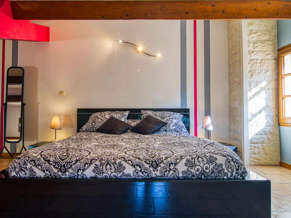 1 chambre avec 1 grand-lit (160 cm, longueur 200 cm), TV (écran plat).