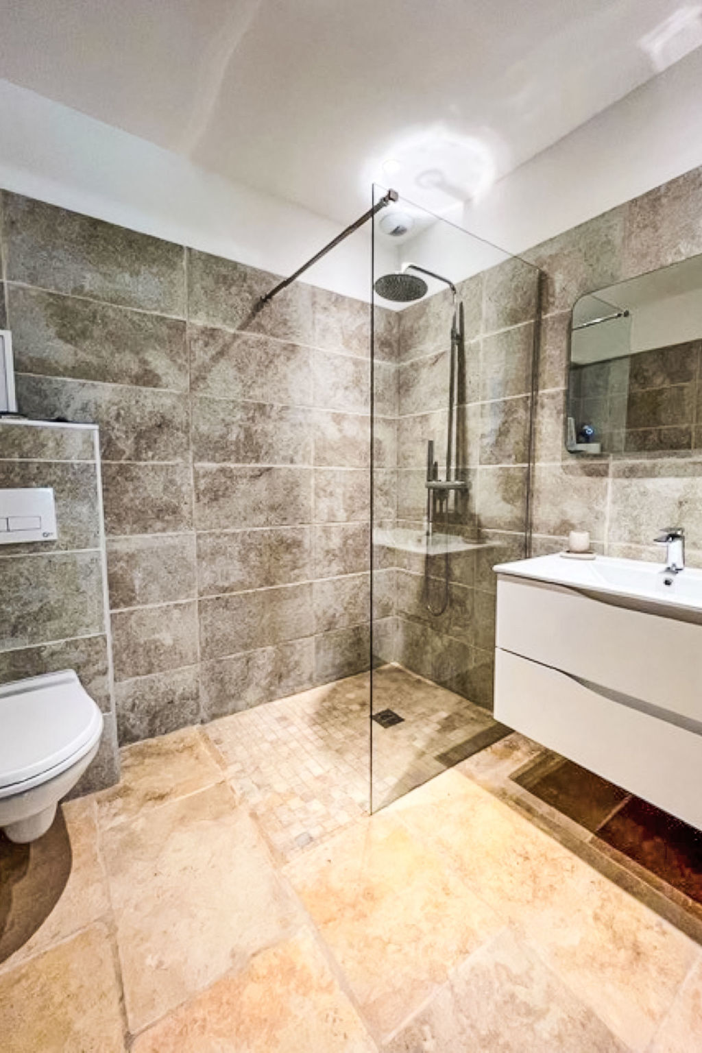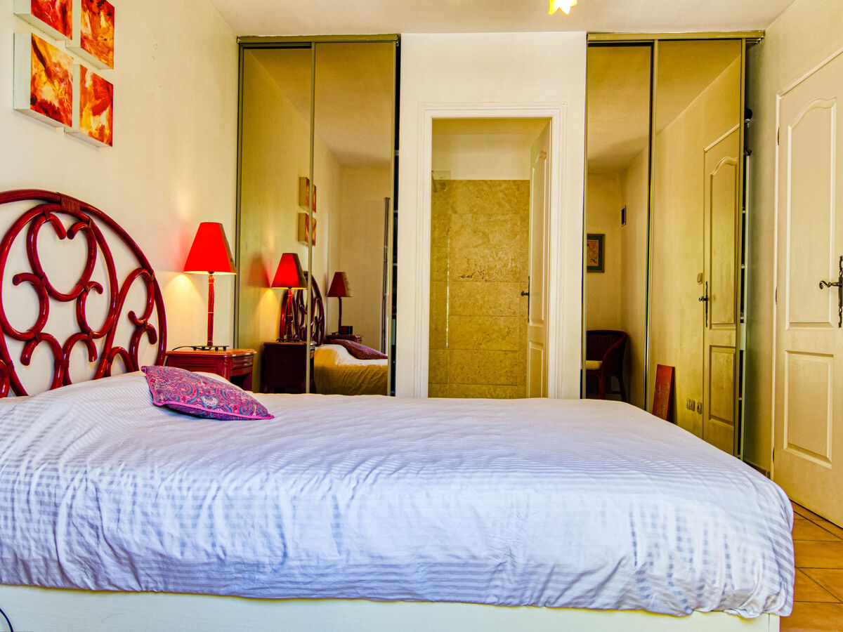 1 chambre avec 1 grand-lit (160 cm, longueur 200 cm), douche/WC.