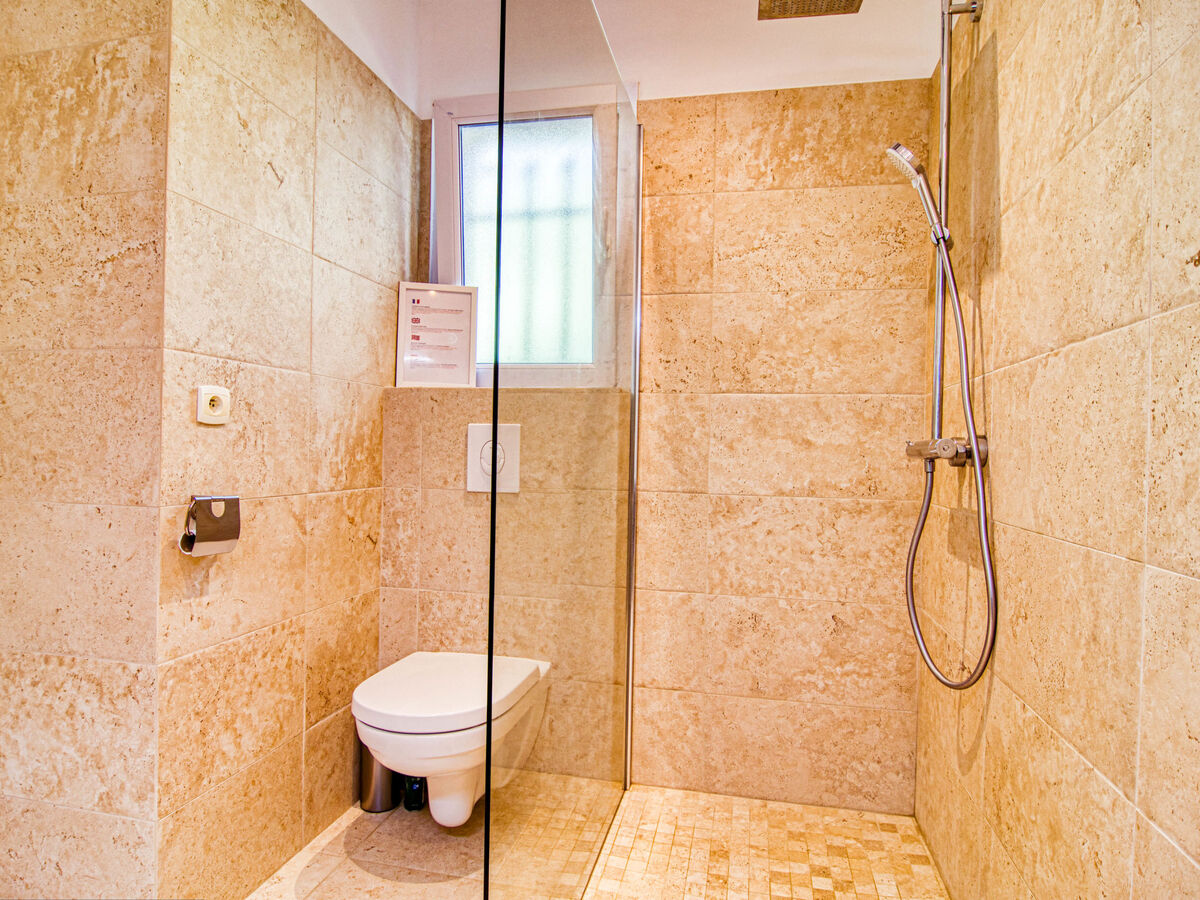 2 chambres, chaque chambre avec: 1 grand-lit (160 cm, longueur 200 cm), douche/WC.