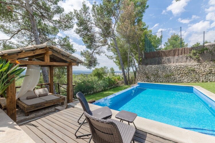 À l'intérieur, un grand hall mène à un lumineux salon-salle à manger avec télévision par satellite et lecteur DVD, idéal pour les réunions. La cuisine entièrement équipée comprend une plaque de cuisson au gaz, un four et un coin repas, donnant directement sur la véranda et la piscine. Au premier étage, une chambre avec salle de bain attenante allie confort et commodité. À l'étage, deux chambres supplémentaires, dont une avec balcon donnant sur les montagnes, et une salle de douche commune offrent des couchages modulables. La climatisation, plusieurs télévisions et des équipements tels qu'une buanderie, une chaise haute et un lit bébé garantissent un séjour agréable.