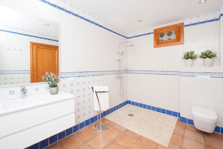 Découvrez une escapade paisible à Ariany, où la piscine privée d'eau salée (6,5 x 3,5 m, profondeur 1,5 m) vous invite à vous rafraîchir après une matinée active. Quatre chaises longues et une douche extérieure offrent un cadre idéal pour bronzer et se rincer avant de profiter d'un barbecue sur la véranda. La terrasse supérieure offre un coin confortable pour se détendre avec un verre de vin tout en admirant la vue sur la piscine et le charmant village en contrebas.