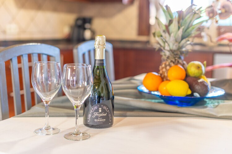 Cette maison de 170 m² peut accueillir jusqu'à sept personnes dans quatre chambres. La chambre du rez-de-chaussée est climatisée, offre une vue sur les montagnes et dispose d'une salle de bain attenante avec baignoire. À l'étage, trois chambres doubles sont également climatisées, complétées par deux salles de bain supplémentaires, l'une avec baignoire, l'autre avec douche. Deux salons offrent des espaces de détente modulables : l'un, plus calme, avec quatre canapés et une télévision, l'autre, intégré à la salle à manger et à la cuisine entièrement équipée, avec plaques vitrocéramiques, lave-linge et fer à repasser. Un lit bébé est disponible pour les familles voyageant avec un bébé.