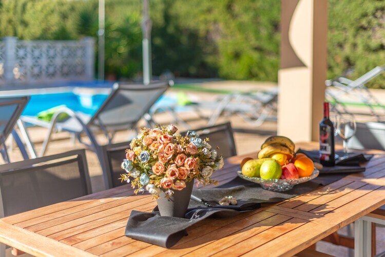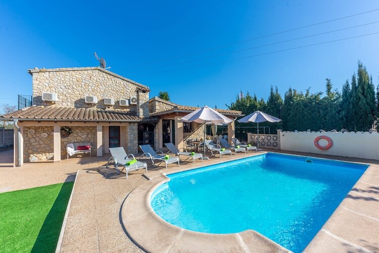 Profitez du climat ensoleillé des Baléares depuis l'extérieur accueillant de la villa. La piscine est idéale pour une baignade rafraîchissante, tandis que les six transats vous invitent à la détente. Promenez-vous dans le jardin et admirez les arbres fruitiers ou retrouvez-vous sur la véranda de 9 m² avec barbecue. La terrasse, équipée d'une table et de chaises ombragées, vous permettra de passer des repas mémorables ou des soirées tranquilles en famille ou entre amis.
