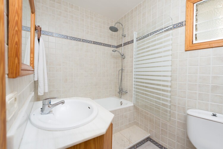 Cette villa de plain-pied de 110 m², située dans un environnement calme, peut accueillir jusqu'à six personnes. Elle dispose de trois chambres, dont une avec un lit double et deux avec des lits simples, ce qui la rend idéale pour les familles ou les amis. La propriété comprend deux salles de bains équipées de baignoires. Pour plus de confort, des ventilateurs sont disponibles sur demande, et le salon offre un canapé confortable, une télévision par satellite et la climatisation pour se détendre après une journée d'activités.