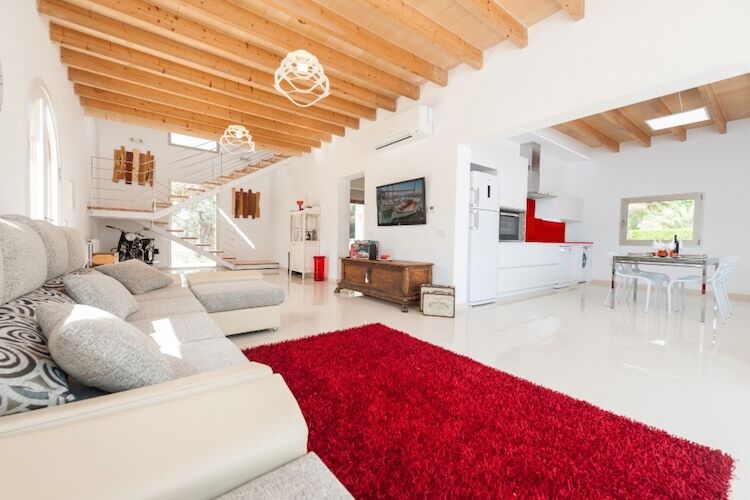 Maria de la Salut es un pequeño pueblo en el centro de Mallorca. En verano, la plaza se convierte en un lugar perfecto para disfrutar de cenas al aire libre y del mercado semanal que se celebra cada viernes. En el pueblo podrán encontrar todo lo que puedan necesitar durante su estancia: farmacia, supermercado, área de deportes, restaurantes, bares, etc. A 15 minutos en coche llegarán a la playa de Ca’n Picafort, una extensa playa de arena perfecta para realizar deportes acuáticos y tomar una copa al atardecer en algún chiringuito. Otras playas como las calas de Cala Torta y s’Arenalet des verger, zonas vÃrgenes y poco concurridas, quedan a media hora de la casa.