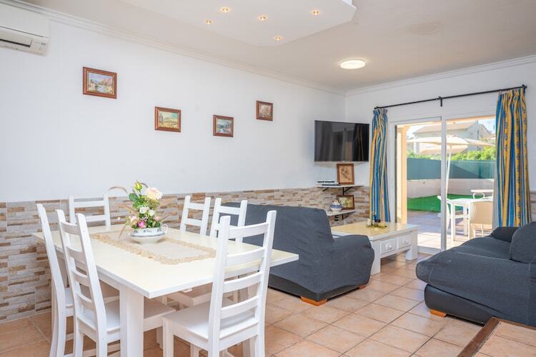 El luminoso salón-comedor es ideal para charlas y comidas con su familia, relajarse viendo la televisión por satélite o leyendo un libro. La cocina está abierta al salón y está muy bien equipada, incluyendo vitrocerámica. La lavanderÃa está ubicada en la terraza y cuenta con 1 lavadora, 1 plancha y 1 tabla de planchar. Hay 3 dormitorios, 1 con cama doble y baño en suite con ducha en la planta baja, y el resto con 2 camas individuales cada uno en la primera planta. Además, en la primera planta encontrarán dos baños, uno con ducha y el otro con bañera. Podemos facilitar 1 cuna y 1 trona para nuestros pequeños huéspedes.