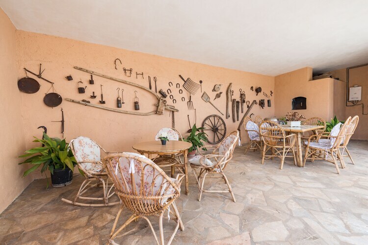En el cuidado jardÃn pueden tomar el sol en cinco tumbonas, jugar con sus niños o refrescarse en la piscina privada de cloro. La piscina tiene 8m x 4m y una profundidad de 1.00m a 1.50m. Si desean darse una ducha rápida, hay un baño exterior con ducha. Desde el jardÃn se contemplan las idÃlicas vistas al campo y a los animales que viven en ella, entre ellos caballos, cabras y avestruces. En presencia del propietario, pueden ir a verles. El porche es ideal para una barbacoa entre amigos y es un lugar muy auténtico ya que está decorado con herramientas de campo antiguas. Según temporada y disponibilidad pueden recoger naranjas frescas directamente del árbol. Esta bonita casa está vallada y nuestros huéspedes tienen acceso a la planta baja, ya que la planta de arriba se encuentra cerrada e inhabitada.