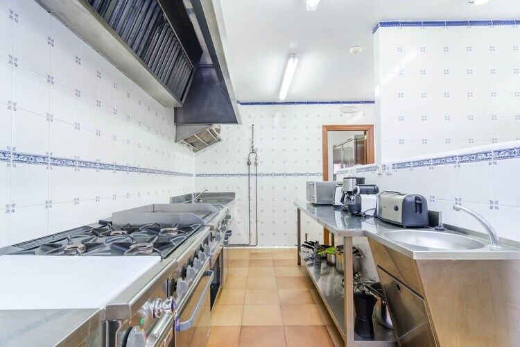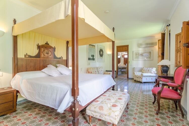 Le bâtiment principal s'étend sur trois étages et comprend un salon spacieux avec télévision par satellite, une grande salle à manger pouvant accueillir 18 convives et une cuisine industrielle entièrement équipée avec cuisinière à gaz. Il y a sept chambres, chacune avec une salle de bain attenante et une baignoire. Toutes les chambres disposent de lits doubles (une avec deux lits simples), de la climatisation, du chauffage central et d'une armoire. Trois chambres se trouvent au premier étage, trois au deuxième et une au troisième. La propriété comprend également une buanderie avec lave-linge, sèche-linge, fer et planche à repasser. Pour les familles avec de jeunes enfants, nous pouvons fournir jusqu'à deux lits bébé et des chaises hautes.