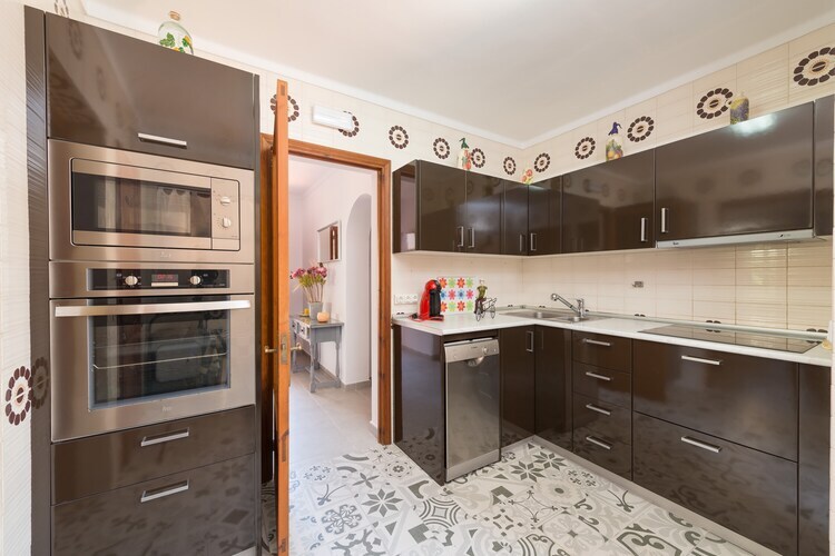 À l'intérieur, vous trouverez une salle à manger lumineuse avec télévision par satellite, climatisation et poêle à bois. La cuisine est récemment rénovée, avec une plaque de cuisson vitrocéramique. La maison offre trois chambres avec placards : une avec un lit double et deux avec deux lits simples. Il y a deux salles de bains, l'une avec une baignoire et l'autre avec une douche. La salle à manger et le couloir sont climatisés, et si vous visitez en hiver, jusqu'à trois radiateurs seront fournis. Un lit bébé et une chaise haute sont disponibles pour les familles voyageant avec un bébé. Vous trouverez également une machine à laver, un fer et une planche à repasser dans le garage.
