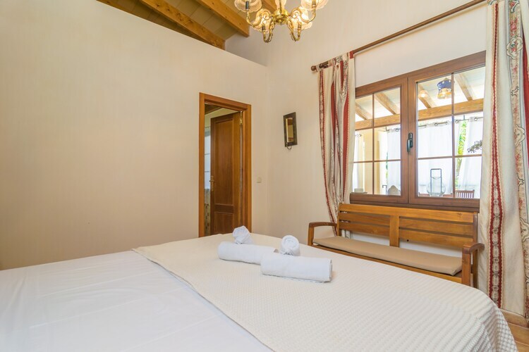La casa cuenta con un estupendo salón-comedor abierto al exterior, donde podrán ver la tv satélite o escuchar algo de música. La cocina, equipada con encimera de gas, tiene un estilo muy original que contrasta con el carácter mallorquÃn de la casa. Tiene dos dormitorios con armario, uno con cama doble y baño en-suite con bañera, y otro con dos camas individuales, además de un segundo baño compartido con ducha. Una cuna y una trona están disponibles en la casa para un bebé. La casa dispone de un ventilador por si hace algo de calor y una estufa de pellet en el salón para los dÃas más frÃos. Hay una área independiente con lavadora, plancha y tabla para planchar.