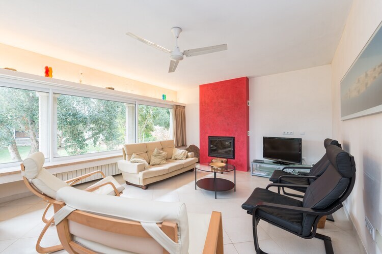 La propriété est répartie sur trois étages, comprenant trois salons, quatre chambres (chacune avec une armoire) et deux salles de bains. Au rez-de-chaussée, il y a un salon avec de grandes baies vitrées et une télévision par satellite, un deuxième salon avec un coin repas, une cuisine équipée au gaz de style majorquin traditionnel et une salle de bains avec douche. Trois des quatre chambres se trouvent à cet étage : une avec un lit double et deux avec des lits jumeaux. Deux chambres s'ouvrent sur une terrasse meublée. Un lit bébé et une chaise haute sont fournis pour les familles avec bébés.