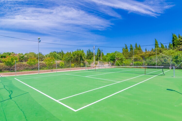 Esta villa cuenta con unos exteriores muy cuidados y ajardinados, que incluyen una estupenda piscina de cloro de 10m x 4m, y 0.50m hasta 2m de profundidad, con protección para niños y ducha exterior. Está rodeada de una gran zona de césped y hay pista de tenis. Junto a la piscina, hay una zona chill-out perfecta para tomar una bebida refrescante. Hay una zona barbacoa donde poder preparar ricas pizzas o una exquisita cena preparada en la barbacoa, y disfrutarla en un estupendo porche que da acceso a la casa.