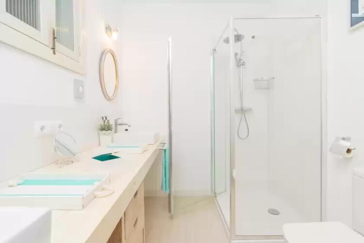 Aquà elegÃs entre tres dormitorios, uno con dos camas individuales, uno con una cama de matrimonio y aire acondicionado y uno con una cama individual. Si viajáis con un bebé, podemos facilitar una cuna y una trona bajo petición. Dos baños con ducha dan servicio a toda la casa; uno de ellos exterior. Un dormitorio dispone de una caja fuerte y hay dos ventiladores.