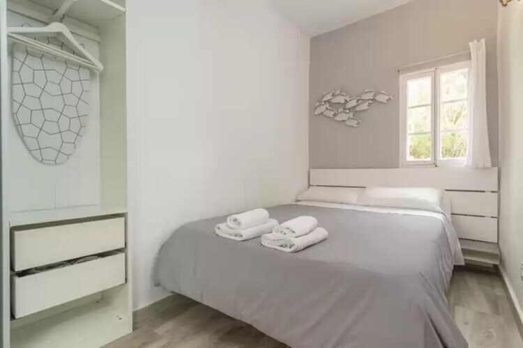 En el interior encontrarás una zona común que comparten salón cocina y comedor y que cuenta con TV por satélite, wifi y AC. El cómodo sofá se convierte en sofá cama. La cocina de vitrocerámica está equipada con lo imprescindible para cocinar en vacaciones. La vivienda cuenta con un único dormitorio con una cama doble. Un baño completo con ducha da servicio a toda la vivienda.