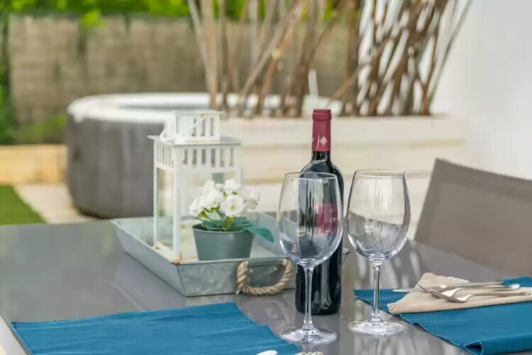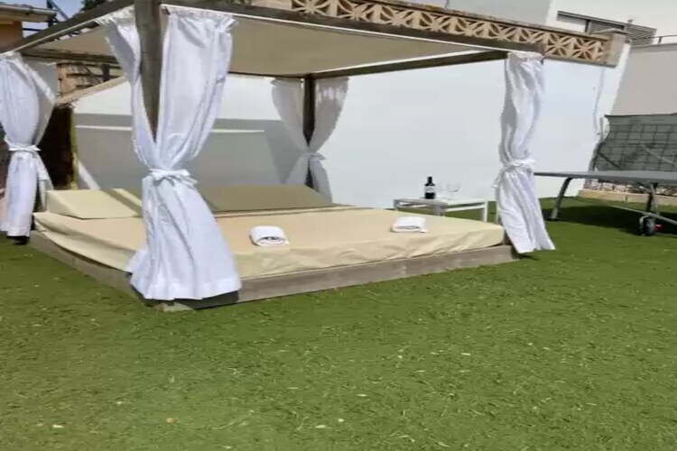 Esta pequeña casita junto al mar será vuestro refugio especial durante los dÃas de vacaciones. En el exterior te encontrarás en medio del campo, en un bonito jardÃn en el que podrás disfrutar del sol mallorquÃn y relajarte en el jacuzzi con agua a temperatura ambiente. Junto a la casa se dispone un rincón con sillones y un sofá en el que tomar el vermut a medio dÃa o contemplar las estrellas por la noche. Además, incluye una cama balinesa para su disfrute al aire libre. A la entrada está el comedor exterior y junto a él la zona de barbacoa para poder preparar estupendas carnes y verduras a la brasa. La parcela está vallada y hay vecinos en los alrededores.