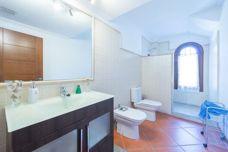 Le logement de 400 m2 est réparti sur deux étages. Au rez-de-chaussée, nous trouvons un salon confortable et familier où vous pourrez regarder la télévision ou vous reposer. Il s'ouvre sur la cuisine par une arche. La cuisine est entièrement équipée, avec une plaque de cuisson en céramique et avec un îlot confortable avec des tabourets pour travailler facilement, ainsi qu'un coin repas pour 6 personnes où vous passerez du temps de qualité avec vos proches tout en cuisinant. En dehors de cela, vous trouverez une incroyable salle à manger pour 10 personnes. La première chambre, avec un lit double, se trouve également au rez-de-chaussée, ainsi que la deuxième chambre, mais celle-ci dispose de 2 lits simples. Il y a une salle de bain avec douche au rez-de-chaussée. A l'étage, nous trouvons les trois autres chambres, les trois avec un lit double et une salle de bain en suite. Il y a la climatisation dans toutes les chambres et dans la cuisine-séjour. Si vous voyagez avec un bébé, un lit bébé et une chaise haute sont à votre disposition. La maison compte également un lave-linge, un sèche-linge, un fer et une planche à repasser. Il y a un parking pour 2 voitures dans le garage.