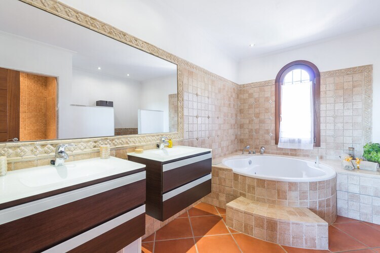 Salle de séjour, salle à manger, cuisine(plaque de cuisson, cafetière/percolateur, four), chambre(2x lit simple), chambre(lit double), chambre(lit double), chambre(lit double), chambre(lit double), salle de bains, salle de bains, salle de bains, salle de bains, 2x garage, micro ondes, lave-vaisselle , combinaison réfrigérateur/congélateur, baignoire, baignoire, baignoire, douche, douche, lavabo, lavabo, lavabo, lavabo, WC, WC, WC, WC, bidet, bidet, bidet, climatisation, climatisation, climatisation, climatisation, climatisation, jardin, mobilier de jardin, 5x transats, barbecue, piscine, lit d'enfant, chaise haute