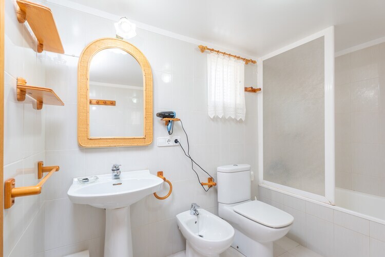 Salle de séjour, cuisine(plaque de cuisson, cafetière/percolateur, four), chambre(2x lit simple), chambre(lit simple, lit simple), chambre(lit double), salle de bains, salle de bains, salle de bains, micro ondes, lave-vaisselle , combinaison réfrigérateur/congélateur, baignoire, douche, lavabo, lavabo, lavabo, WC, WC, WC, bidet, bidet, climatisation, jardin, mobilier de jardin, 6x transats, barbecue, 2x parasol, piscine, lit d'enfant, chaise haute