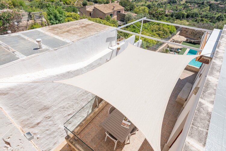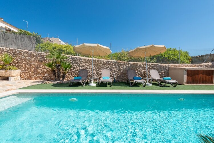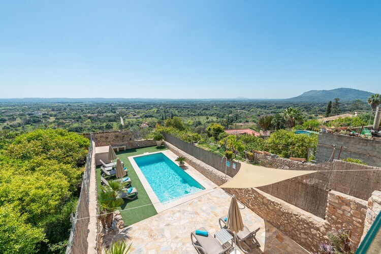 Cette charmante villa de trois étages, située dans le paisible village de Búger, offre une vue imprenable sur la Serra de Tramuntana et la campagne luxuriante. La piscine privée au chlore de 8 x 4 m (profondeur de 0,4 à 1,5 m) est entourée de pelouses impeccables et de pierres apparentes. Idéale pour se détendre sur l'une des quatre chaises longues ou siroter un verre sous la charmante véranda, elle est idéale. La terrasse supérieure avec coin repas est idéale pour les barbecues en famille et les soirées tranquilles.