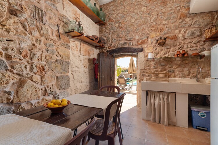À l'intérieur, le rez-de-chaussée comprend un spacieux salon avec télévision par satellite, qui, sous une arche en pierre traditionnelle, mène à une cuisine-salle à manger entièrement équipée avec plaques vitrocéramiques et appareils électroménagers de style industriel. Les trois chambres climatisées (deux doubles et une twin) se trouvent au premier étage, ainsi qu'une salle de bains moderne. Une seconde salle de bains se trouve au rez-de-chaussée. Au rez-de-chaussée, au niveau de la piscine, découvrez une salle de jeux aux allures de grotte et un second coin repas avec réfrigérateur et évier, idéal pour les réunions au bord de la piscine.
