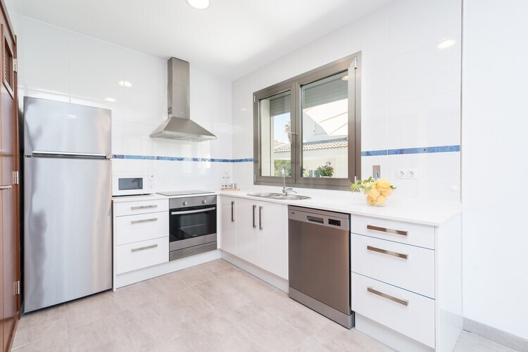 Las estancias tienen un diseño fresco, con muebles claros y grandes ventanas que dejan entrar mucha luz. En el salón-comedor puede pasar momentos con sus seres queridos, mirando la televisión de satélite o disfrutando de una cena juntos. La cocina abierta cuenta con lo imprescindible para preparar platos sencillos y entre otras cosas hay una encimera de vitro cerámica, un microondas y un horno. Para hacer grandes desayunos, hay una cafetera, tostadora y un exprimidor. La planta baja se completa con un baño con bañera. Esta casa ofrece 3 cómodos dormitorios en la primera planta, todos con armario. Puede elegir entre dos cuartos con dos camas individuales y uno con una cama de matrimonio. Uno de los dormitorios con dos camas cuenta con un baño en-suite con ducha. Hay otro baño con ducha independiente en la planta de arriba. Si viajan bebés, facilitamos 2 cunas y 2 tronas. Hay A/C por conducto (sólo aire frÃo).
