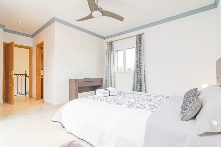 À l'intérieur, le rez-de-chaussée vous accueille avec un lumineux salon-salle à manger climatisé et doté d'une télévision, ainsi qu'une cuisine entièrement équipée avec plaque de cuisson au gaz, four, micro-ondes et table à manger. Des toilettes invités complètent ce niveau. Au premier étage se trouvent trois chambres : deux avec lits jumeaux (l'une avec ventilateur, l'autre avec climatisation) et une avec un lit double et climatisation, ainsi qu'une salle de bain avec douche. Au dernier étage, une quatrième chambre avec un lit double, un ventilateur, une salle de bain attenante avec baignoire et accès à une terrasse privée. Toutes les chambres disposent de placards. Un lit bébé et une chaise haute sont disponibles, et la buanderie comprend un lave-linge, un fer et une planche à repasser. Situé à Colònia de Sant Jordi, vous serez à proximité de restaurants, de boutiques et de magnifiques plages comme Es Port et Es Trenc. Profitez des promenades nocturnes au port ou d'une excursion en bateau jusqu'à Cabrera.