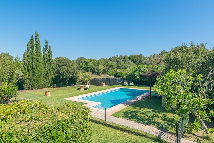 El interior de la casa es tan sencillo, cómodo y con ese bonito estilo mallorquÃn que lo hace muy especial. Al entrar tenemos una sala-comedor, con televisión satélite y aire acondicionado, que se abre paso hacia la cocina equipada con vitrocerámica, horno, lavavajillas, etc. Aquà mismo se encuentra la lavadora y, por supuesto, hay plancha y tabla de planchar. Para descansar tienen tres dormitorios con armario y aire acondicionado, dos de ellos con dos camas individuales y salida a un balcón con vistas a la piscina, y el tercero con una cama de matrimonio y espacio para preparar cuna y trona. Por último, hay dos baños en la casa, uno con ducha y otro con bañera.
